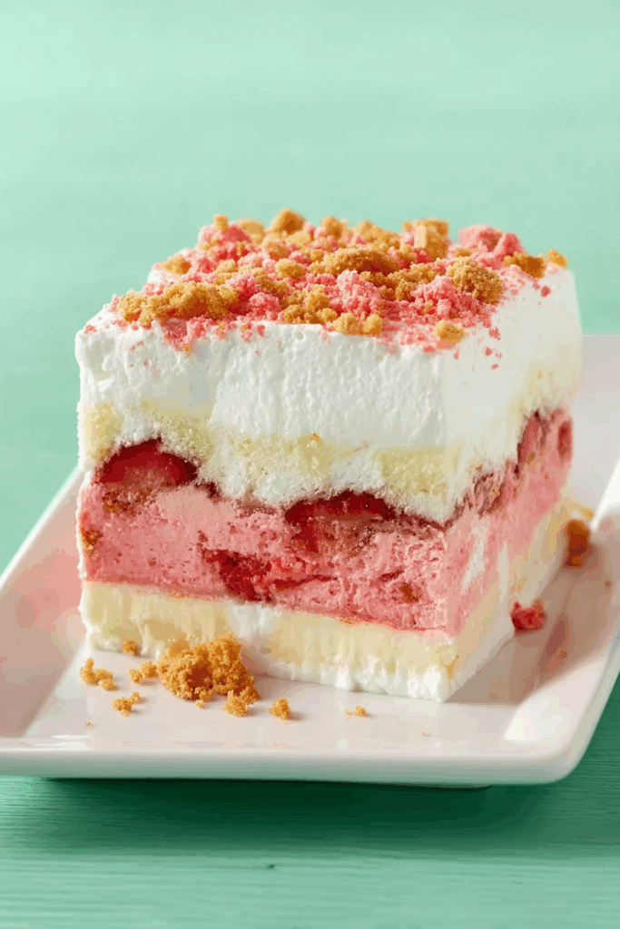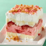 Remember chasing the ice cream truck for those pink, crumbly strawberry shortcake bars? Now imagine turning that childhood favorite into a stunning Strawberry Shortcake Bar Ice Cream Cake, rated 5.0 stars by 1 reviewer! This no-bake loaf pan dessert layers fresh strawberry sorbet and creamy vanilla ice cream, coated with whipped cream and a colorful pound cake–strawberry crumble.