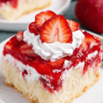The Strawberry Shortcake Poke Cake is like a mix between a classic strawberry shortcake and a creamy poke cake. It’s made with a soft white cake, sweet strawberry pie filling, fluffy whipped topping, and fresh sliced strawberries on top. It’s quick to make, taking about 1 hour total including cooling time. The difficulty level is easy, making it perfect for beginners. Whether you’re making it for a birthday, potluck, or just because you love strawberries, it’s sure to be a hit with everyone!