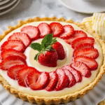 Summary: This Strawberry Tart features a pre-baked crust lined with sweet German chocolate, filled with a smooth no-bake cream cheese mixture, and topped beautifully with fresh sliced strawberries coated in a simple red currant jelly glaze. It’s an elegant dessert with distinct layers.