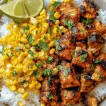 Why They’re Important: The chicken provides a smoky, protein-packed core, while the cilantro-lime rice adds zesty freshness. The street corn delivers creamy, tangy elote flavor, and cotija cheese ties in Mexican authenticity. Optional toppings like avocado and jalapeños elevate the bowls with color and texture, making each bite a fiesta.