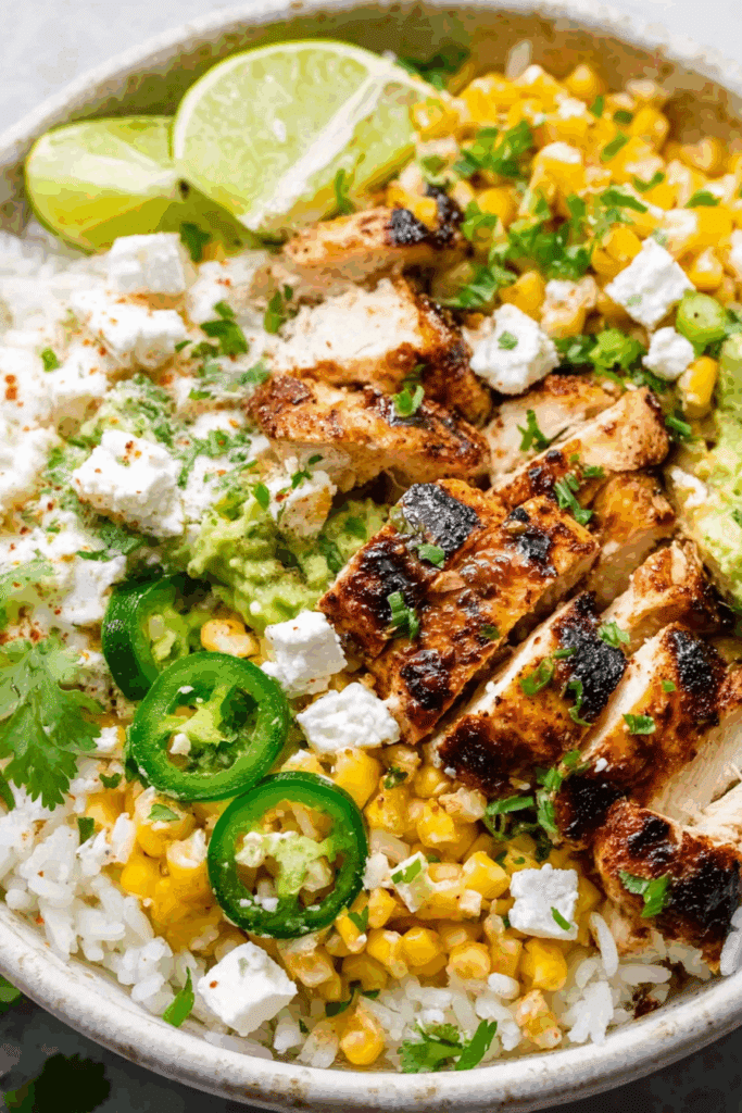 - Shrimp Street Corn Bowl: Swap chicken for grilled shrimp or fish for a lighter, seafood twist.