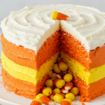 The eggs and milk provide protein and calcium, making this cake a bit more nutritious than typical desserts. The candy corn filling adds a fun, sweet surprise, while the colorful frosting mimics the iconic candy corn look. The ingredients are affordable, widely available, and easy to swap for dietary needs, like gluten-free or vegan diets. The small portions (12 servings) help with moderation, and the hidden candy corn makes every slice a Halloween treat.