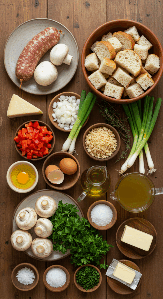 • Vegetarian Mushroom Stuffing: Omit sausage and use vegetable broth; add 1 cup sautéed mushrooms for flavor.