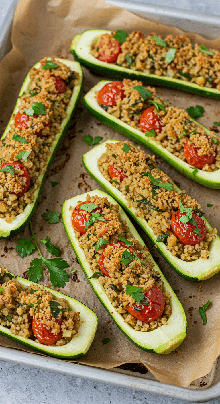 Ever wonder how to turn humble zucchini into a vibrant, crowd-pleasing dish? What if you could whip up Stuffed Zucchini Boats that earn a 4.93 rating from 63 happy eaters, yet take just 40 minutes to make? This recipe’s your ticket to a vegetarian summer meal that’s perfect as a light main course or a flavorful side dish. Packed with a zesty mix of tomatoes, Parmesan, and fresh thyme, these boats are as healthy as they are delicious. Grab your baking sheet, and let’s make some zucchini magic—your kitchen’s about to smell like a Mediterranean garden!