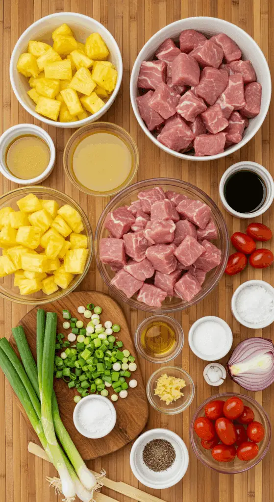 Here’s what you need to make these Sweet-and-Sour Pork Skewers with Pineapple. Each ingredient adds to the tangy, savory, and tropical magic.