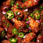 Assembling Sweet ‘n’ Tangy Chicken Wings is all about creating tender, saucy wings with a bold, sticky glaze and optional crunchy toppings. Here’s how to put it together: