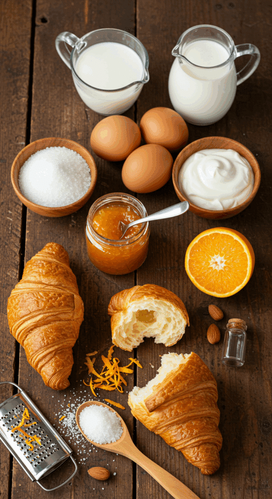 - Croissants (4, split): Create a buttery, flaky base that soaks up custard. Sub: Gluten-free croissants, brioche, or day-old white bread (about 4 cups cubed).