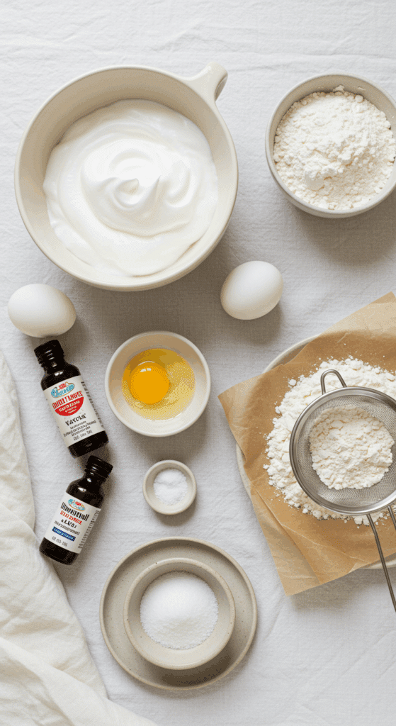 • Egg Whites: Whipped to stiff peaks, they create the cake’s airy texture. No yolks allowed, as fat would weigh it down.