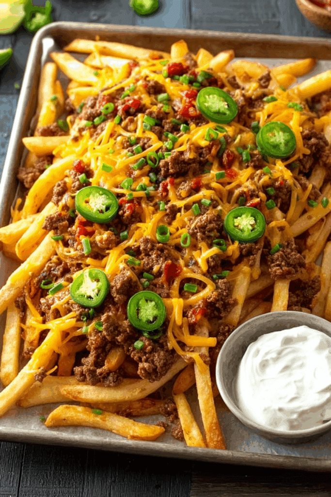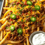 Want a dish that’s loaded with bold flavors and perfect for game day or a fun family meal? Texas Chili Fries are the ultimate recipe! This slow-cooker dish combines tender beef chili, spiced with Mexican tomatoes and chili seasoning, served over crispy French fries and topped with melty cheddar cheese. Add a dollop of sour cream and jalapeño slices for extra flair! Ideal for casual gatherings or a cozy night in, these chili fries are easy to prep and deliver big, Tex-Mex taste. Ready to create a delicious, crowd-pleasing meal? Let’s dive into this tasty recipe!