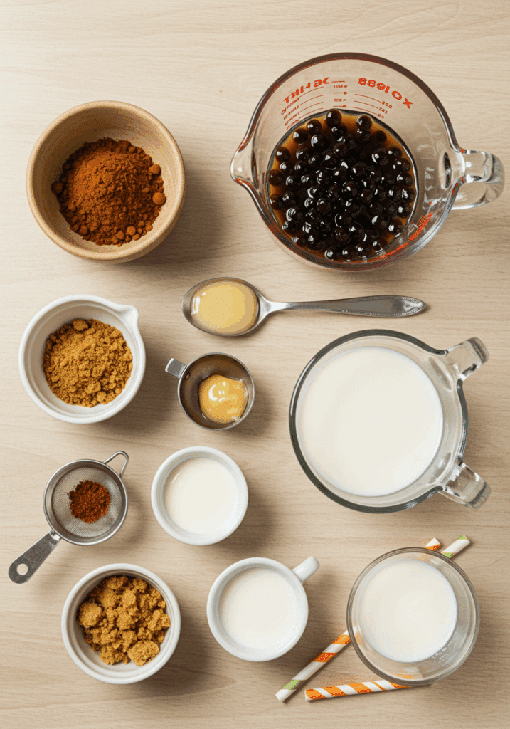 - 100 g (½ cup) tapioca pearls: Provides the chewy boba texture that makes this drink so fun.
