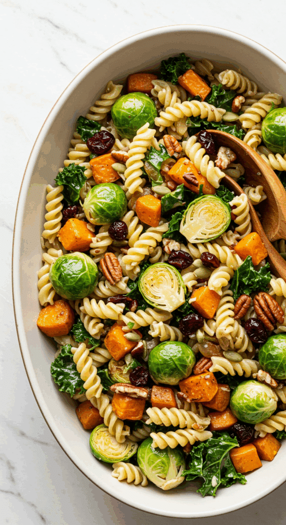 Thanksgiving Pasta Salad is the side dish that brings vibrant, seasonal, and veggie-packed perfection to every bite. With its roasted Brussels sprouts, sweet potatoes, kale, and creamy tahini dressing, it’s perfect for Thanksgiving, vegetarian feasts, or any gathering. Easy to make with make-ahead options, this salad is sure to impress your guests. So, grab your roasting pan, toss together this delicious dish, and enjoy a festive favorite. We’d love to hear how your salad turns out—share your creations in the comments or on social media!
