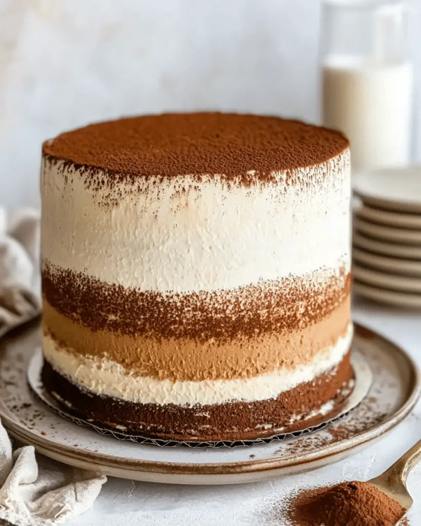 The inspiration? Pure love for traditional Tiramisu, combined with the desire to create a truly impressive celebration cake. I wanted to capture that iconic blend of coffee, cocoa, and creamy mascarpone, but present it with the structure and visual appeal of a multi-layered cake. This recipe does exactly that, down to the cocoa dusting on top.
