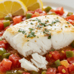 The Tomato-Poached Halibut is a quick, wholesome meal that brings vibrant, tangy flavors to your table in just 30 minutes. With tender halibut, a zesty tomato sauce, and fresh cilantro, it’s perfect for healthy dinners, seafood lovers, or elegant gatherings. Try it as is or add your own spin—maybe some extra spice or veggies? Share your creations with us! Grab your skillet, gather your ingredients, and enjoy every flaky, flavorful bite!