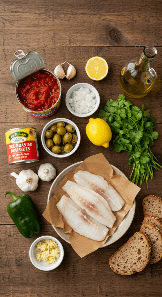 Why These Ingredients Matter: The halibut provides lean protein, while the tomatoes and olives create a tangy, savory sauce. The poblano peppers and garlic add depth, and the cilantro and lemon bring freshness, making this a balanced, nutrient-rich meal perfect for healthy eating.