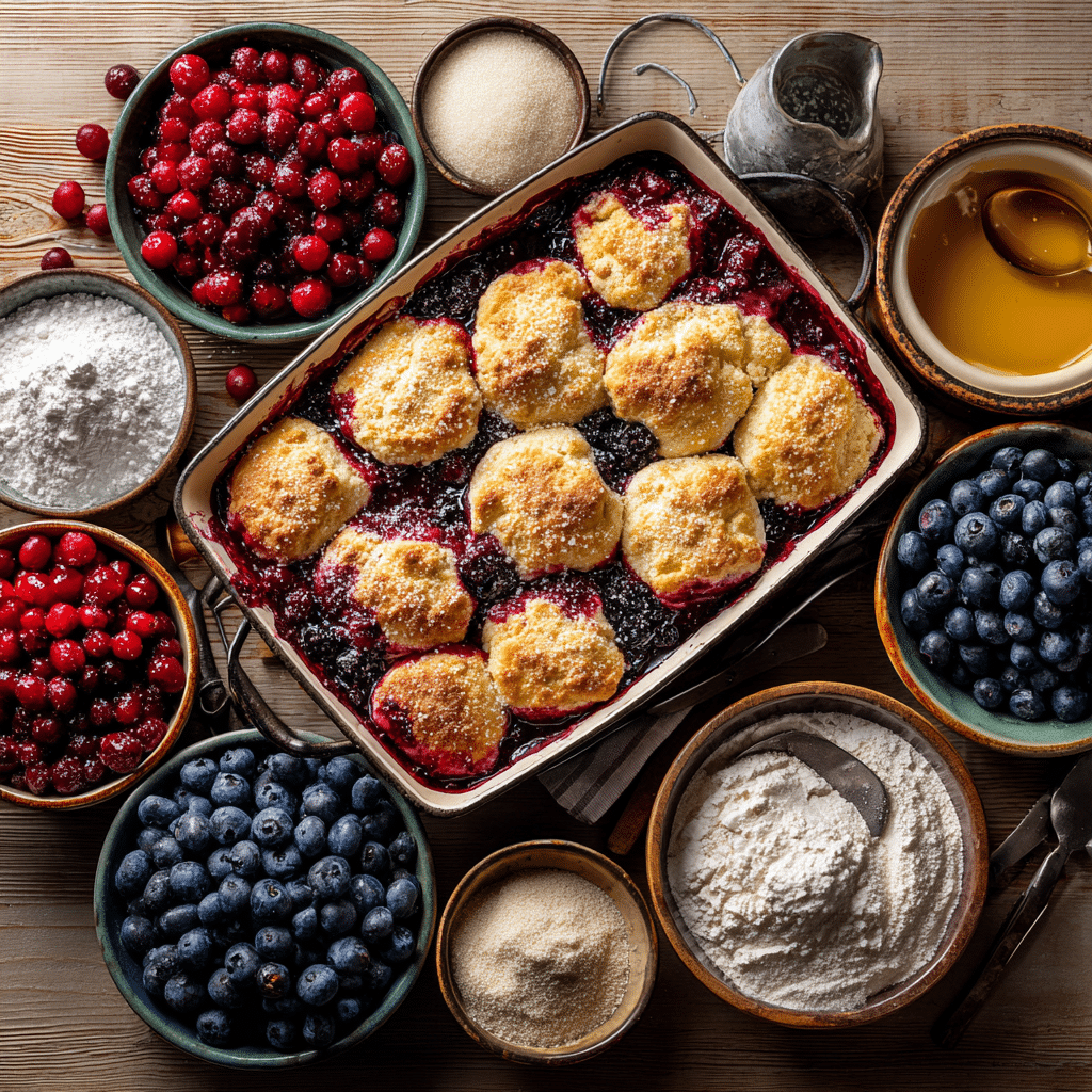 Craving a dessert that’s bursting with juicy berries and topped with a warm, golden crust? Triple-Berry Cobbler is your answer! This delightful dessert combines sweet-tart cranberries, blueberries, and blackberries with a light, buttery topping for a treat that’s perfect for summer gatherings, cozy nights, or any time you want a fruity indulgence. It’s easy to make, uses fresh or frozen berries, and bakes up beautifully. Ready to fill your kitchen with the aroma of warm berries? Let’s get baking!