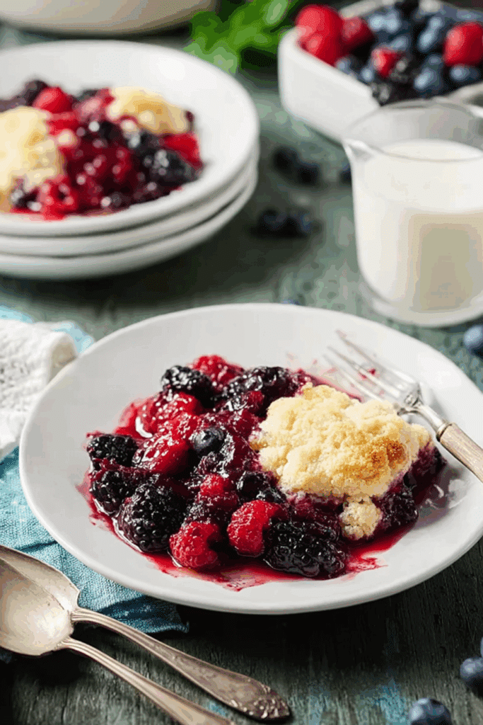• Why It’s Special: This cobbler is lighter than many desserts, thanks to fat-free milk and minimal butter. It’s packed with antioxidant-rich berries, customizable, and ideal for serving warm with your favorite toppings.