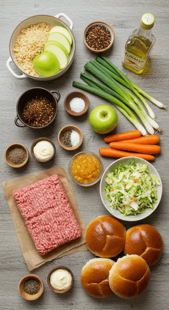 - Green apple (1 small, peeled and grated): Adds moisture and a subtle sweetness to keep burgers juicy. Sub: Pear or a tablespoon of applesauce.