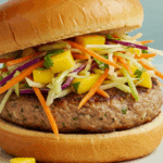 - Assemble: Place a burger patty on each bun bottom, top with mango slaw, and add the bun top. Tip: Add extra slaw on the side for extra crunch.