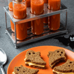Whether you’re serving it at a spooky dinner or a cozy fall lunch, this soup and sammie combo is sure to be a fang-tastic hit.