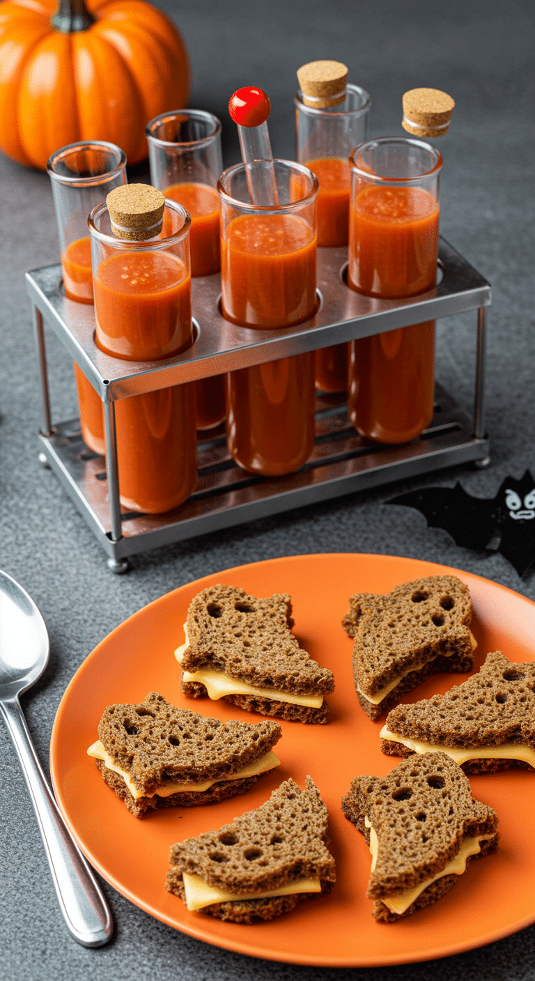 The Vampire Blood Tomato Soup with Muenster Sammies is all about combining rich flavors with a creepy Halloween vibe. Here’s how to make it a party hit: