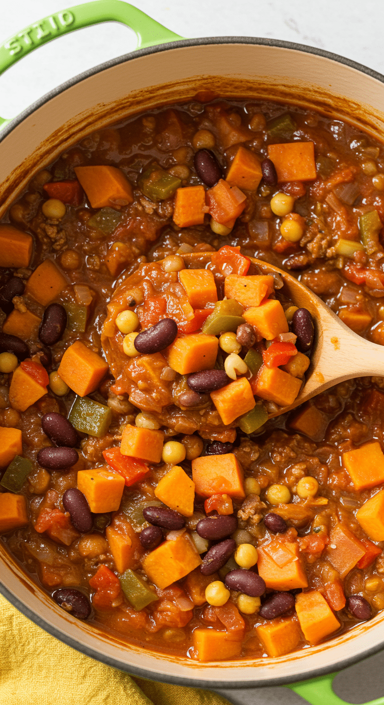 • Chili: Ladle into deep bowls, ensuring each serving has beans, sweet potato, and peppers in a rich broth. Tip: Stir before serving to distribute ingredients evenly.