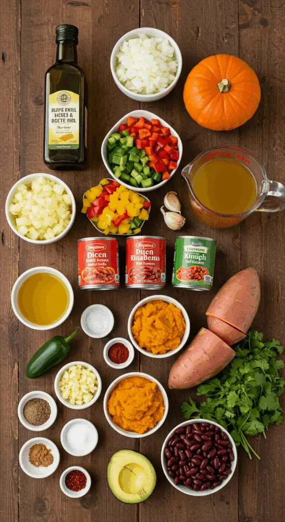 Health perks: Pumpkin and sweet potatoes provide fiber, vitamins A and C, and antioxidants for immunity and heart health. Beans offer plant-based protein and fiber, while peppers add vitamin C. The low-sodium broth and minimal oil keep it light, and the recipe’s flexibility supports gluten-free, vegan, or spicier diets.
