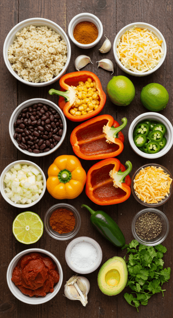 Let’s dive into the ingredients that make these Vegetarian Stuffed Peppers so irresistible. Each one brings flavor or texture, and I’ll share why they’re key, plus swaps for flexibility. Most are pantry staples or easy to find.