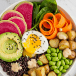 This Veggie Power Bowl is a total game-changer: it’s a colorful mix of crisp greens, hearty black rice, creamy avocado, and protein-packed edamame, all tied together with a tangy sesame ginger dressing. It’s vegan (swap eggs for tofu), gluten-free, and ready in just 20 minutes if you prep the rice and dressing ahead. With a perfect 5-star rating from 4 votes, it’s a small-batch winner that’s ideal for meal prep or a solo meal. Light, refreshing, and nutrient-packed, it’s your go-to for feeling energized and satisfied.