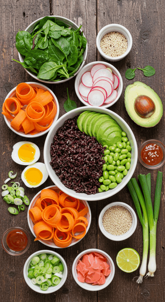 Ready to make this Veggie Power Bowl? It’s a quick, no-cook recipe (if rice and eggs are prepped) that’s as fun to assemble as it is to eat. I’ll guide you with easy steps and pro tips to nail it. Let’s go!