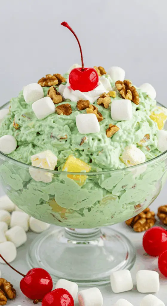 - Why It’s Special: The combination of pistachio pudding, juicy pineapple, fluffy marshmallows, and crunchy walnuts creates a delightful mix of textures and flavors. It’s quick, budget-friendly, and yields 8 servings, making it ideal for gatherings.