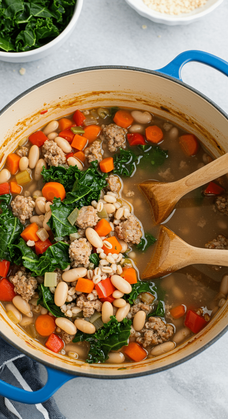 - Serving: Ladle the soup into deep bowls to showcase the hearty beans, barley, and colorful veggies. Ensure each bowl gets a mix of sausage, kale, and broth.