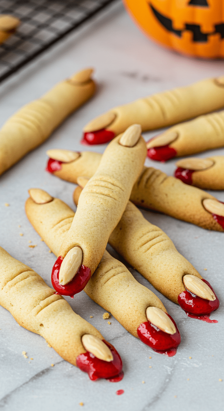 Looking for a Halloween treat that’s equal parts spooky and scrumptious? Witch Finger Cookies, with their eerie almond “nails” and “bloody” raspberry jam tips, are the perfect sweet-and-scary addition to your festive spread. Rated 4.0 stars from 62 reviews, these easy-to-make cookies are a hit for their ghoulish look and buttery flavor. Whether you’re hosting a Halloween party or delighting trick-or-treaters, these cookies will cast a delicious spell. Let’s whip up these wickedly fun treats!