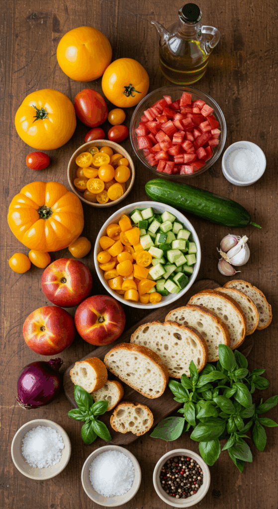 - Yellow or Orange Tomatoes (4 large, firm, ripe, coarsely chopped): Offer sweet, tangy flavor.