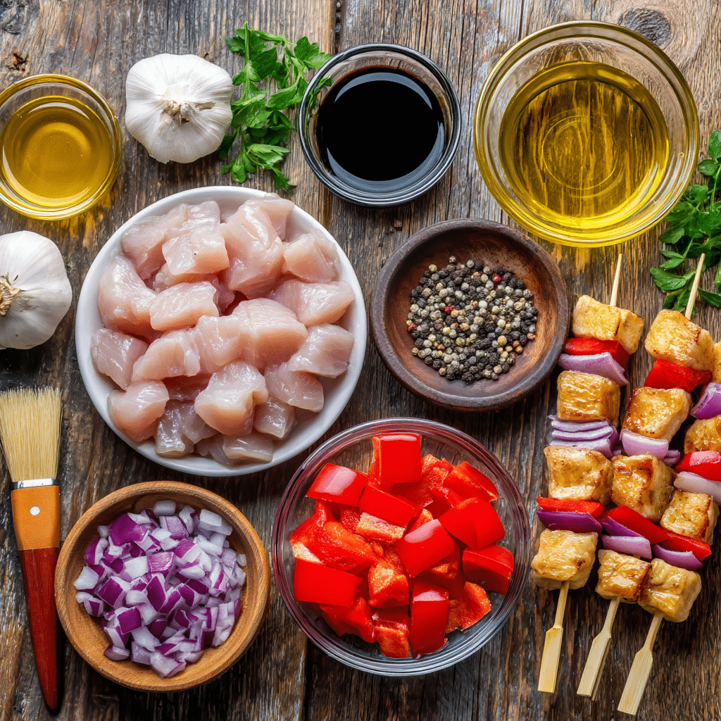 These kabobs come together with ingredients that create a flavorful, colorful dish. Here’s what you need and why each matters: