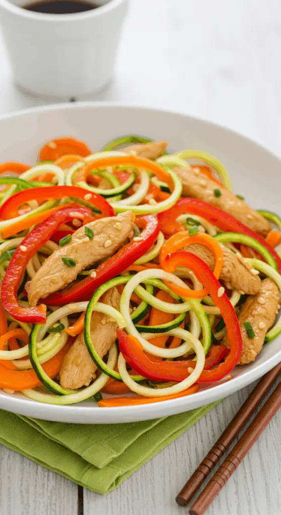 - Keto Zoodle Stir-Fry: Already keto-friendly (~4–5g net carbs); reduce carrots to 1 for stricter keto.